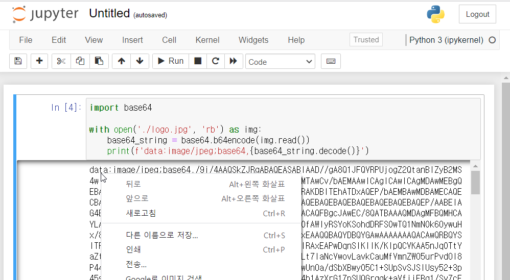 주피터 노트북에서는 브라우저의 컨텍스트 메뉴가 나오고