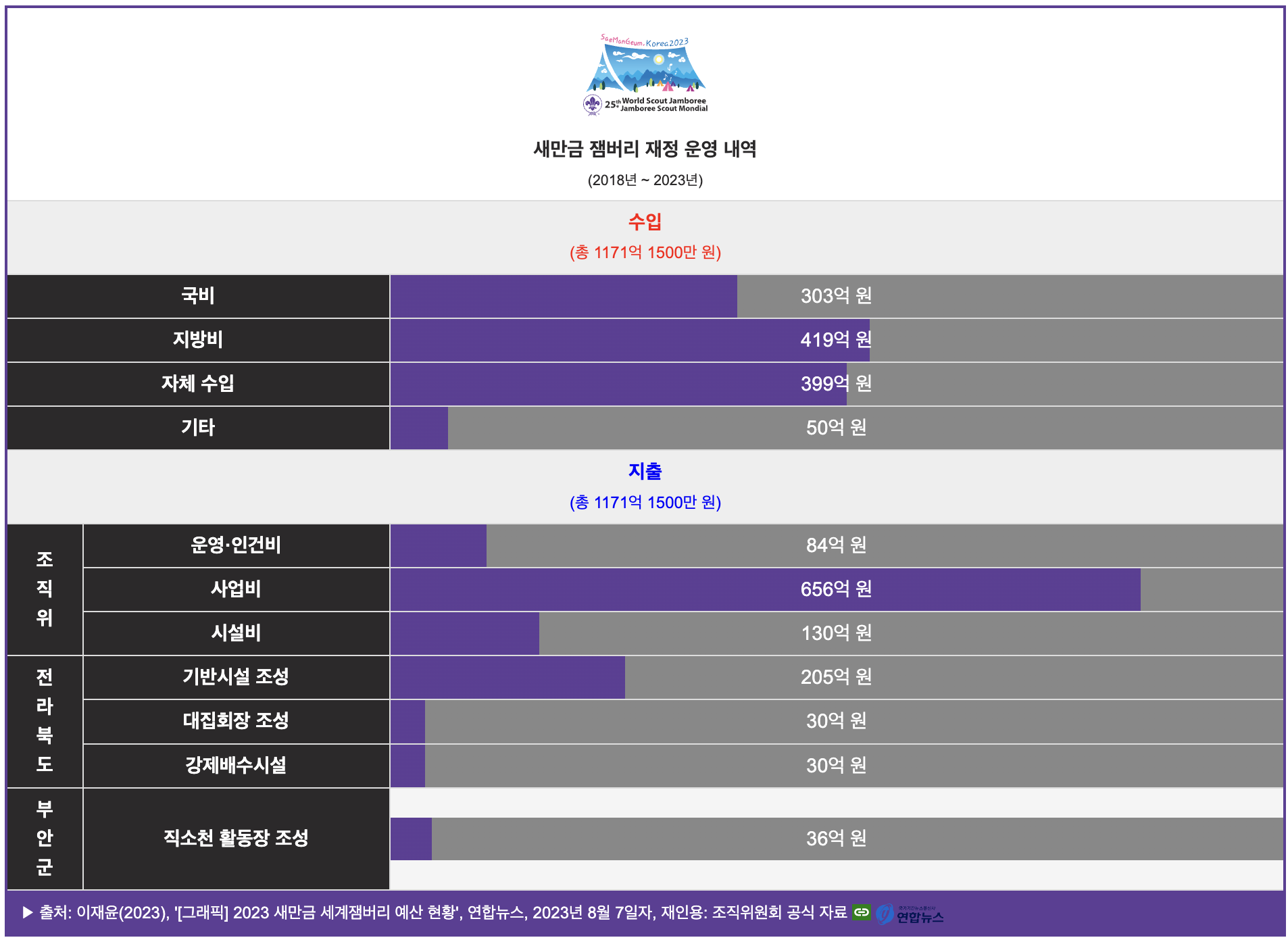 2023년 제25회 세계스카우트잼버리 재정 운영 내역