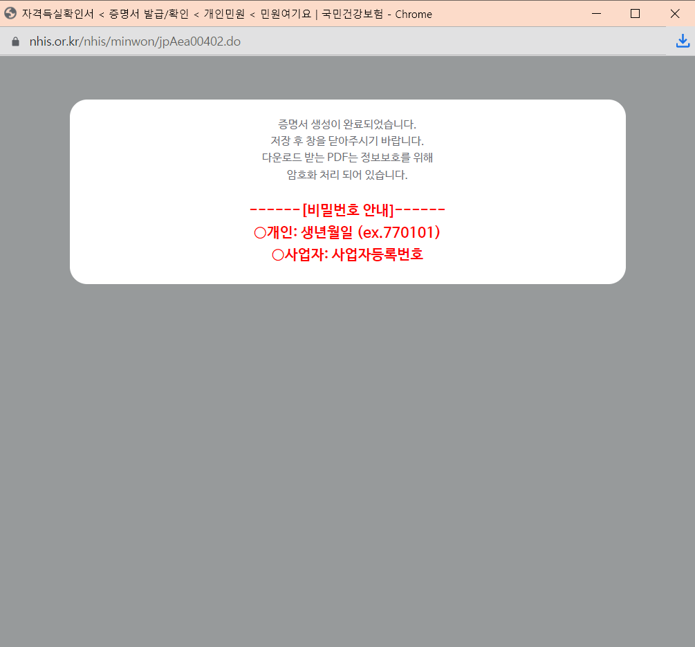 - 다운로드한 PDF를 열어보려면 비밀번호가 필요합니다.