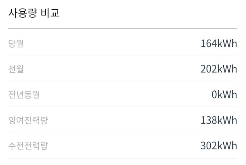 해당 월의 전기 사용량은 164kWh가 됩니다.