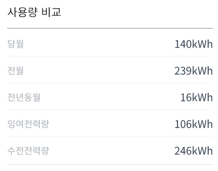해당 월의 전기 사용량은 140kWh가 됩니다.